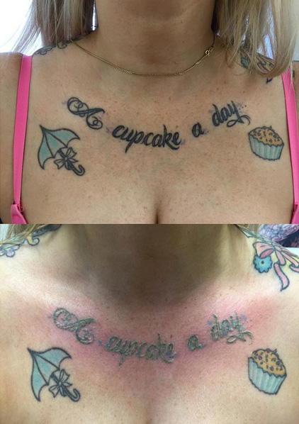 I get laser tattoo removal as well, so I know what you, the clients, go through! Frosting on my chest.